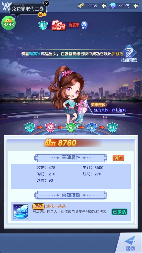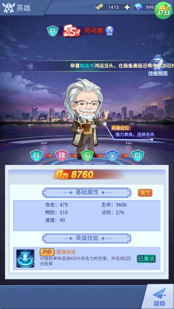 英雄定位:强力单体,连续击杀