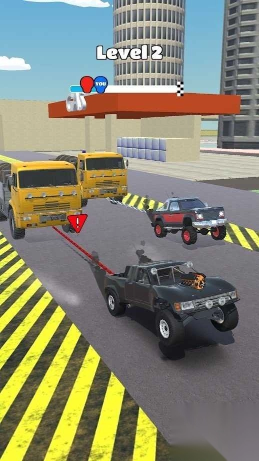 2、进入【Level-2】,控车拖行目标,避黄色卡车,借道路空间,保持车辆稳定,完成拖拽任务。