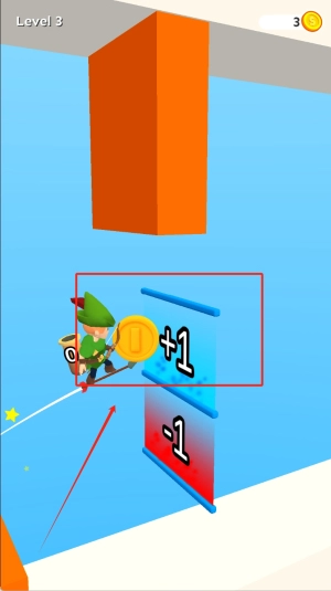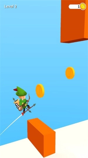 1、长按屏幕蓄力,松开手指发射箭矢,角色会随箭飞行。蓄力时间越长射程越远,需要精准把控力度和角度。