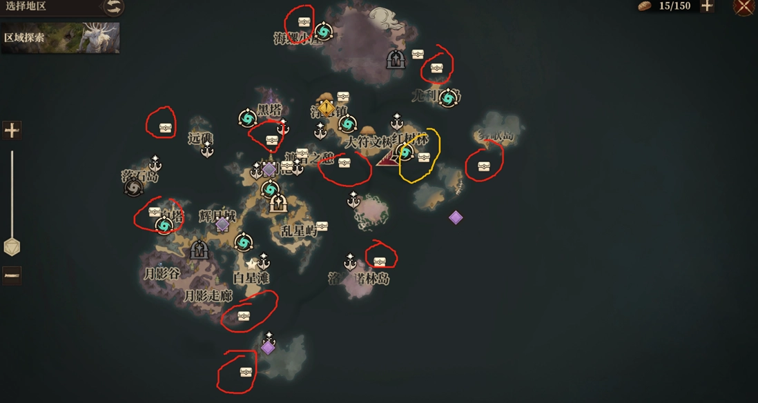 1、主岛及其周边:藏宝图的分布涵盖“海默小崖、大符文栎红树林、月影谷”等主岛地区,同时还包括远礁、乱星屿等岛屿。在寻找藏宝图时,需依据地图锚点,规划一条以中心区域(大符文栎红树林)为起点,向外扩散的采集路线。
