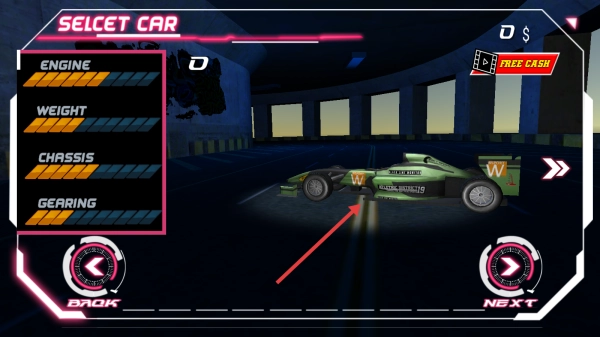 2、在选车界面,选定绿色赛车,点击【NEXT】进入赛道。