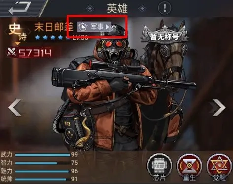 天赋:每个英雄拥有不同的天赋技能,这里需要留意英雄的天赋是否与固定技能有加成。如末日邮差,每提升1级【突击】,骑兵基础攻击+5,骑兵基础防御+2;
