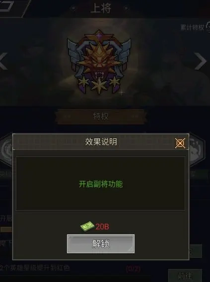 副将:副将功能需要在军衔达到上将后,激活副将特权开启。
