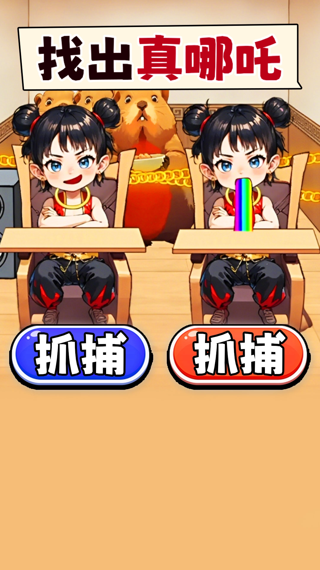 每个房间都隐藏着线索,从物品的摆放、装饰的风格、到细微的痕迹,都可能是辨别真假哪吒的关键!你需要仔细观察,认真分析,才能识破猿族的伪装,找出真正的哪吒!《找出假哪吒》,一场充满趣味和挑战的观察力大考验,等你来挑战!