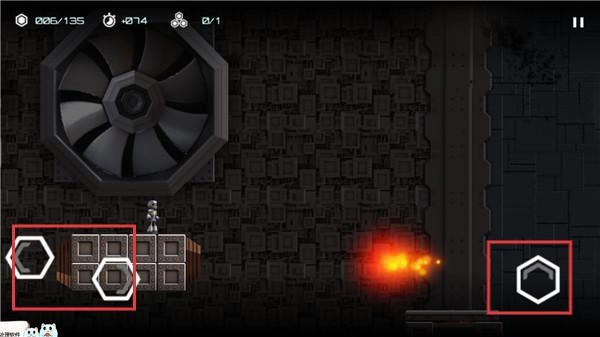 3、游戏中有三个按钮,左边2个按钮控制角色移动,而右边的按钮控制跳,双击跳跃可以进行两段跳。