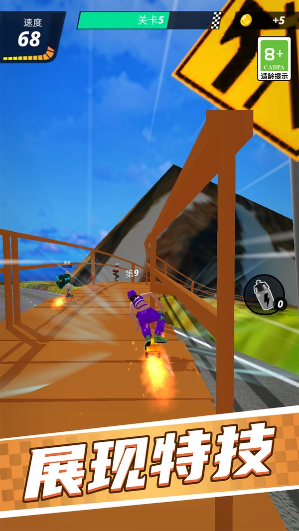 2、掌握漂移、空中翻转和特技动作,这些高级技巧不仅能帮助你在比赛中获得优势,还能让你的滑板之旅更加炫酷;