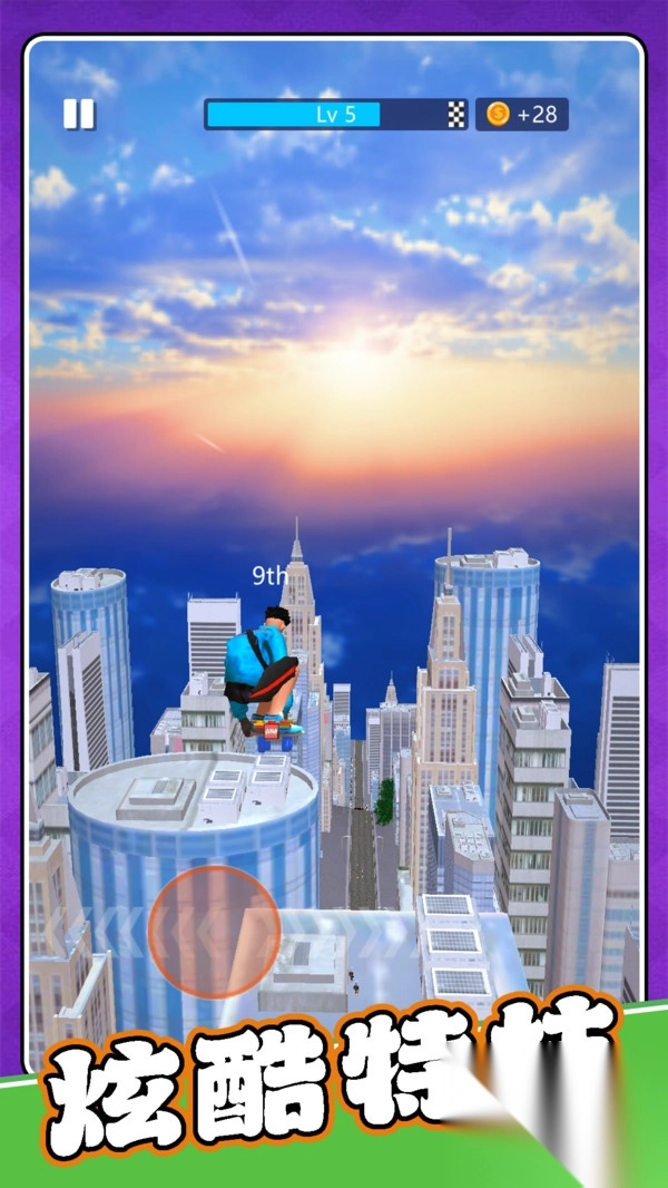 3、掌握合理运用滑板技能的方法,比如在面对长距离障碍需要跨越时,运用超级跳跃技能;在直线加速的路段,开启极速技能。
