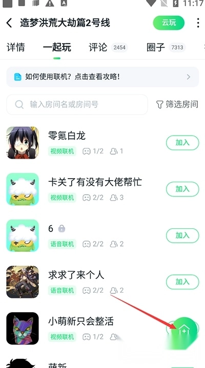接着第三步。可以加入别人的房间一起联机,也能自己创建房间和朋友一起联机,自己创建房间就点击小房子。