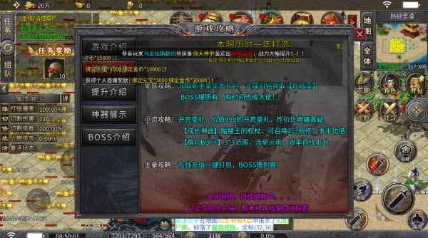 1、游戏呈现了复古传奇的游戏机制,让玩家可以在这个世界中书写自己的传奇故事。