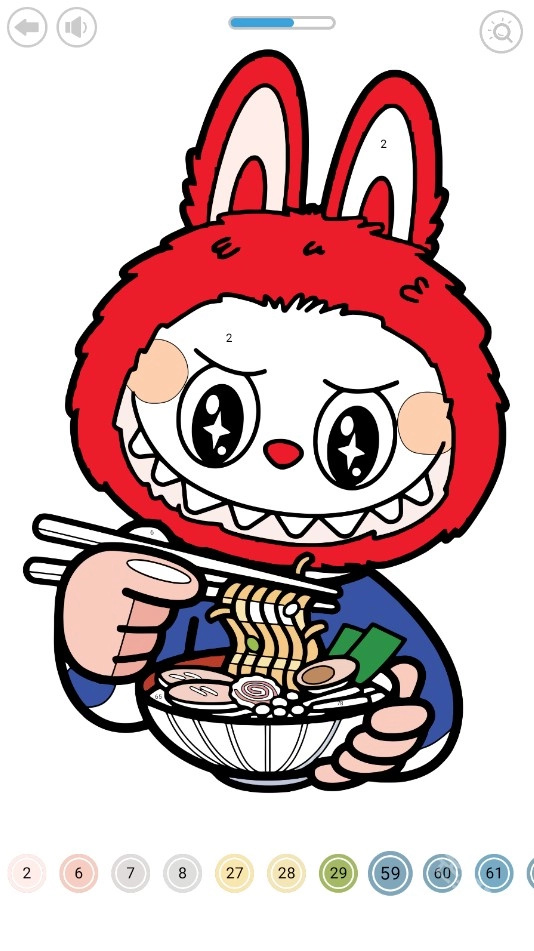 2、游戏提供了详细的插图,并在每个区域标注了相应的数字。只需根据数字选择对应的颜色进行涂色,即可轻松完成作品;