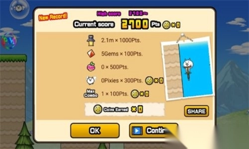 1)与各种可爱角色的奇妙冒险,通过指尖的移动与点击,带领你的猫猫不断地向前冲吧。