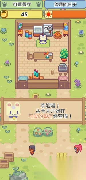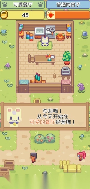 喵味餐厅是一款拥有超可爱画风的模拟经营游戏。在这个Q萌的像素天地中,玩家要帮助猫咪经营与管理一家餐厅。每天都得去菜市场采购食材,精心制作各类美食,热情招待顾客来赚取资金,然后用这些资金升级各种设施,让店面规模不断扩大。最终目标是凭借经营这家餐厅,成为小镇上的百万富翁。