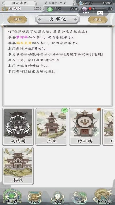 2. 招募更多的弟子共同修炼和练功,逐渐扩展宗门的规模,提升战斗力。