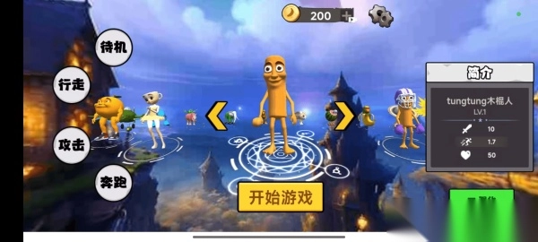 2. 每个角色都有独特的技能和数值,例如我所选择的木头人是标准的战士体质,能打能抗,技能还能敲晕敌人硬控2秒。