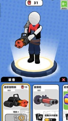 摩猎射手,一款融合肉鸽元素与动作射击的策略生存游戏。它采用简约3D美术风格,以第三人称俯视视角,为你带来轻松的自动化攻击体验。在广阔多元的地图场景里,你能自由探索,收集武器、金币与道具,抵御如潮般涌来的敌人,全力求生。