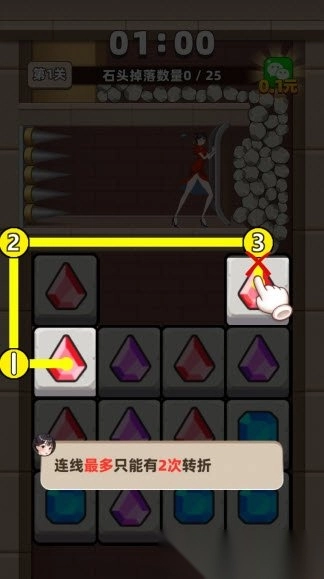 2. 进入游戏界面,点击相同的砖块连接在一起即可消除。