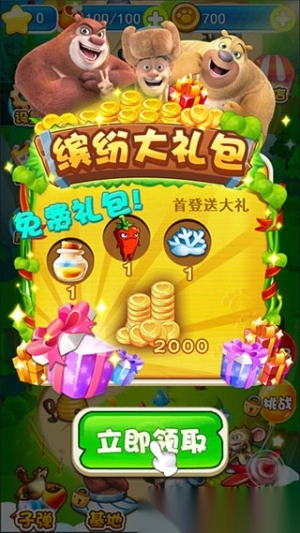 1首次进入游戏时,玩家会收到系统赠送的缤纷大礼包,礼包内有3种强力道具以及2000金币,点击“立即领取”即可收下奖励。