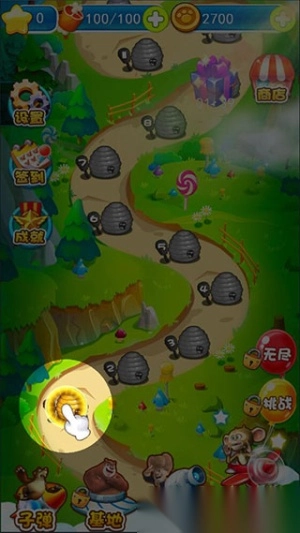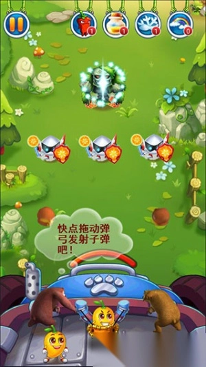 《熊出没之极限弹射新版》是一款经知名儿童影视剧《熊出没》授权打造的益智射击类手机游戏,能为低龄玩家带来色彩鲜艳的炮弹弹射体验。在游戏中,玩家要协助熊大、熊二,利用不同属性和功能的炮弹,打败死守蜂巢的敌人,助力它们成功吃到蜂蜜,从而完成挑战。