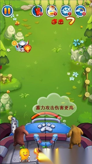 4.敌人会从屏幕上方来袭,快速拖动弹弓发射子弹阻止敌人靠近战车,屏幕上方还有道具可供使用。