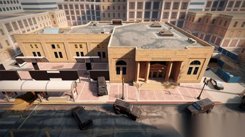 这家守备森严的银行位居人口密集都市中心,可不是轻易就能渗透的。由于这栋建筑物包含防守方轻易就能强化守备的多间中小型厅室,攻击方将无法轻易在这里找到任务目标。