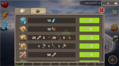 建造锤:用来扩展木筏,造成大船,具体作用后面会详细说明。合成:5木板,2废铁