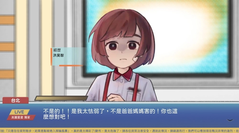 2. 辩论环节 - 游戏中设有辩论环节,参考台湾常见的名嘴节目,玩家可以透过在探索过程中蒐集到的证物证词进行反论,逐渐佔据上风以取得辩论胜利。