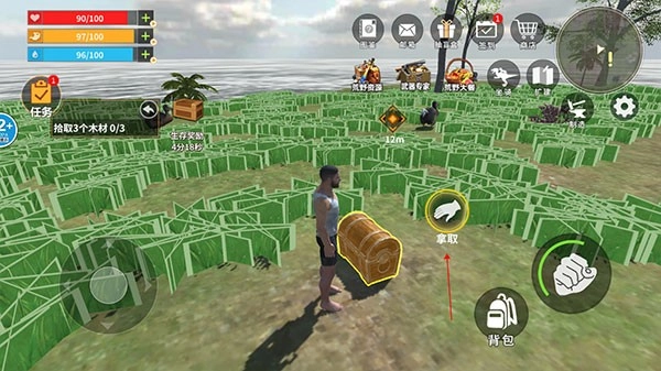 3、当角色靠近物品,屏幕中心会出现一个“拿取”按钮,点击即可打开对应的物品或者直接放到背包。