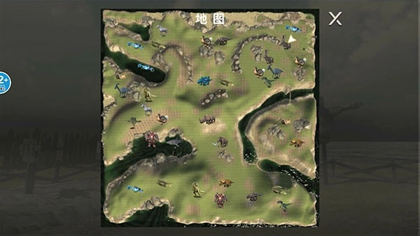 6、右上角有物种图鉴,收集到会点亮,还有商店、坐骑以及房屋扩建等快捷按钮,在玩的过程中可以随时打开地图,白色的光标是自己的当前位置。