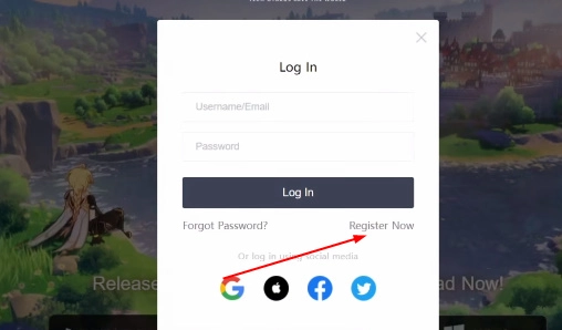 1、首先打开:https://genshin.mihoyo.com/en/home的链接来进入到,随后点击右上角的official来进入游戏详细界面。