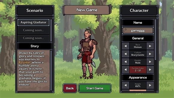 3、点击new game后需要创建一个角色,你可以自定义自己的角色形象。