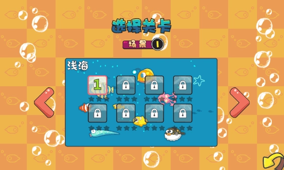 第二关:海星、猫鲨出现,要小心。