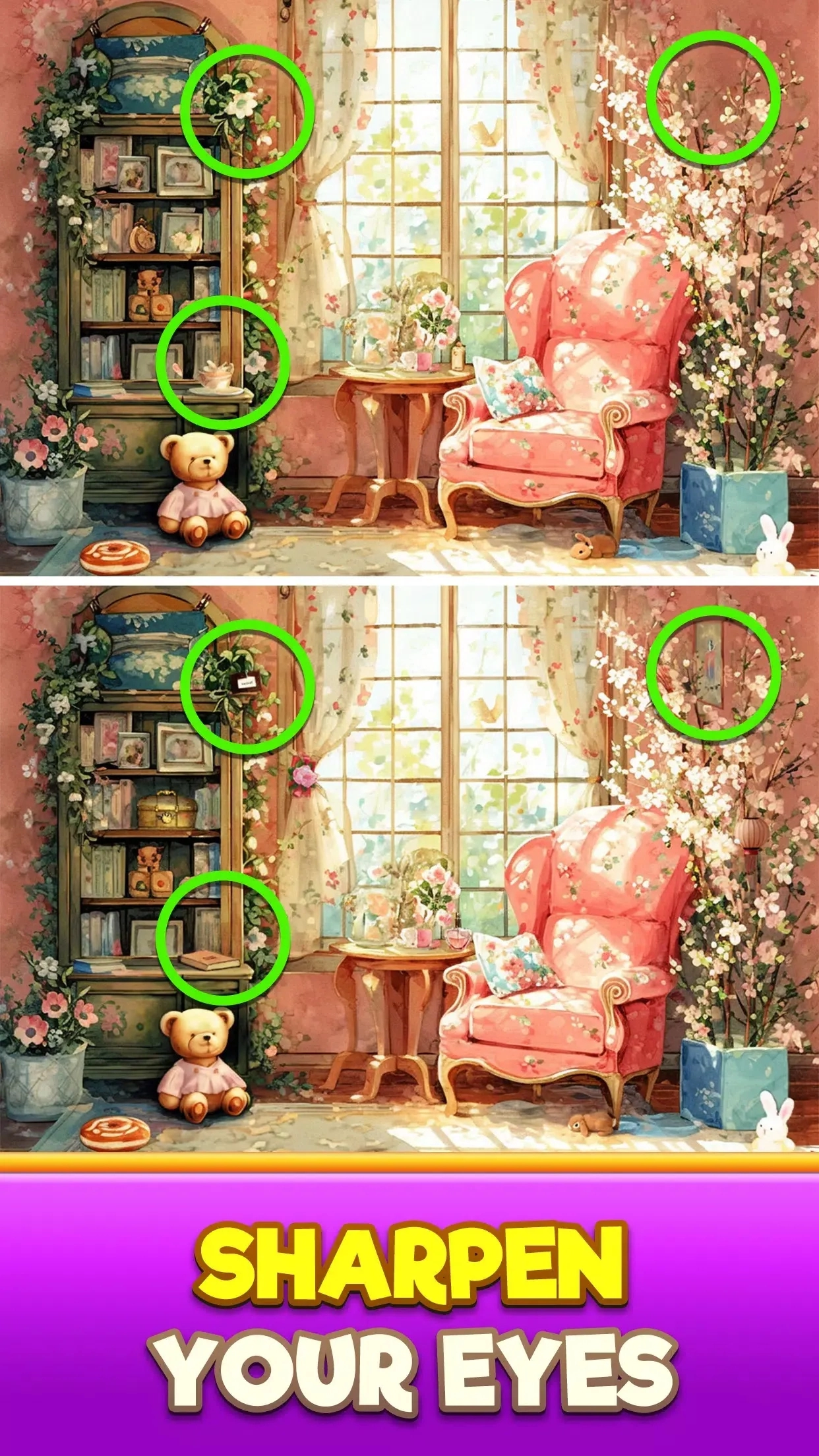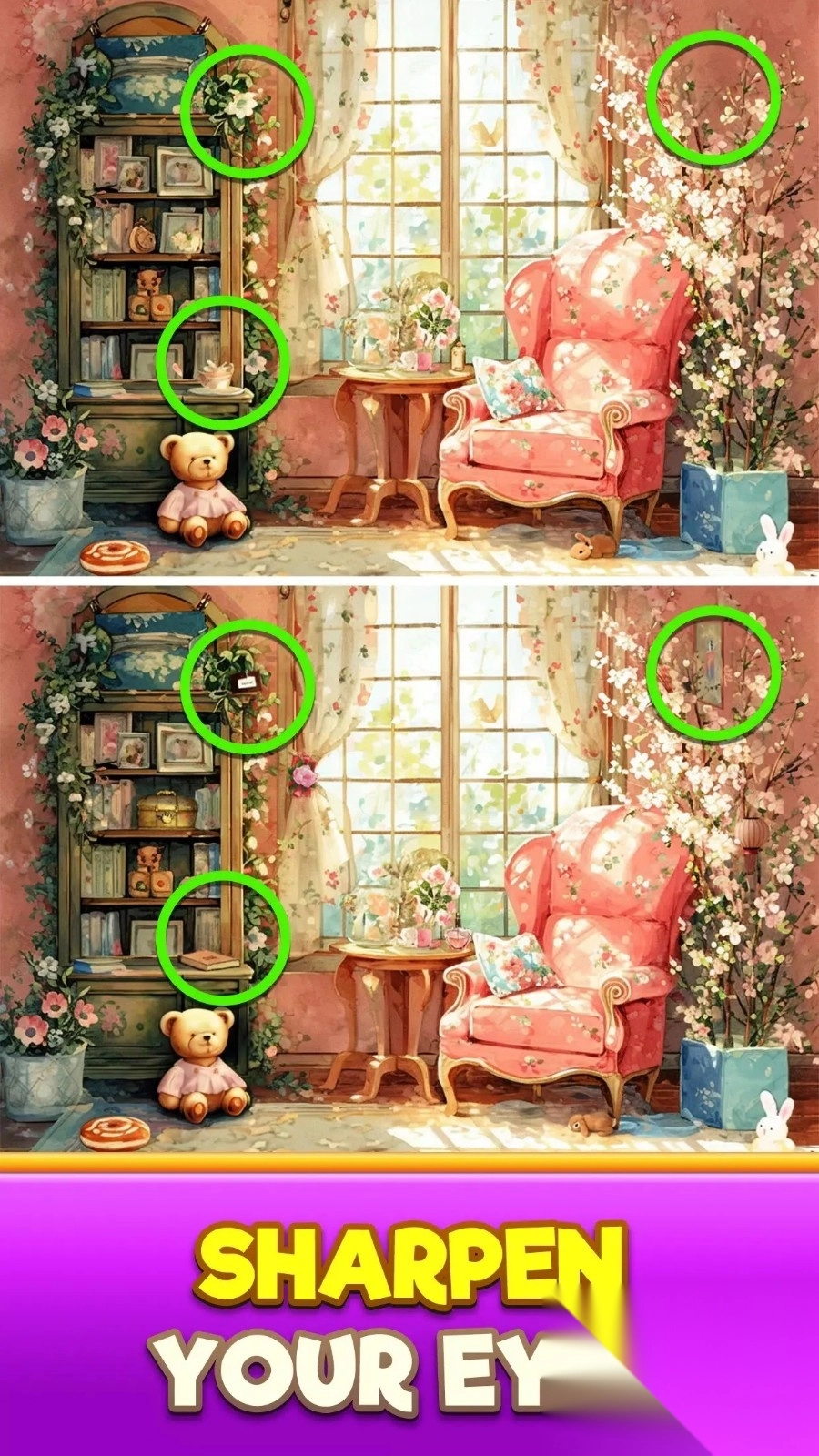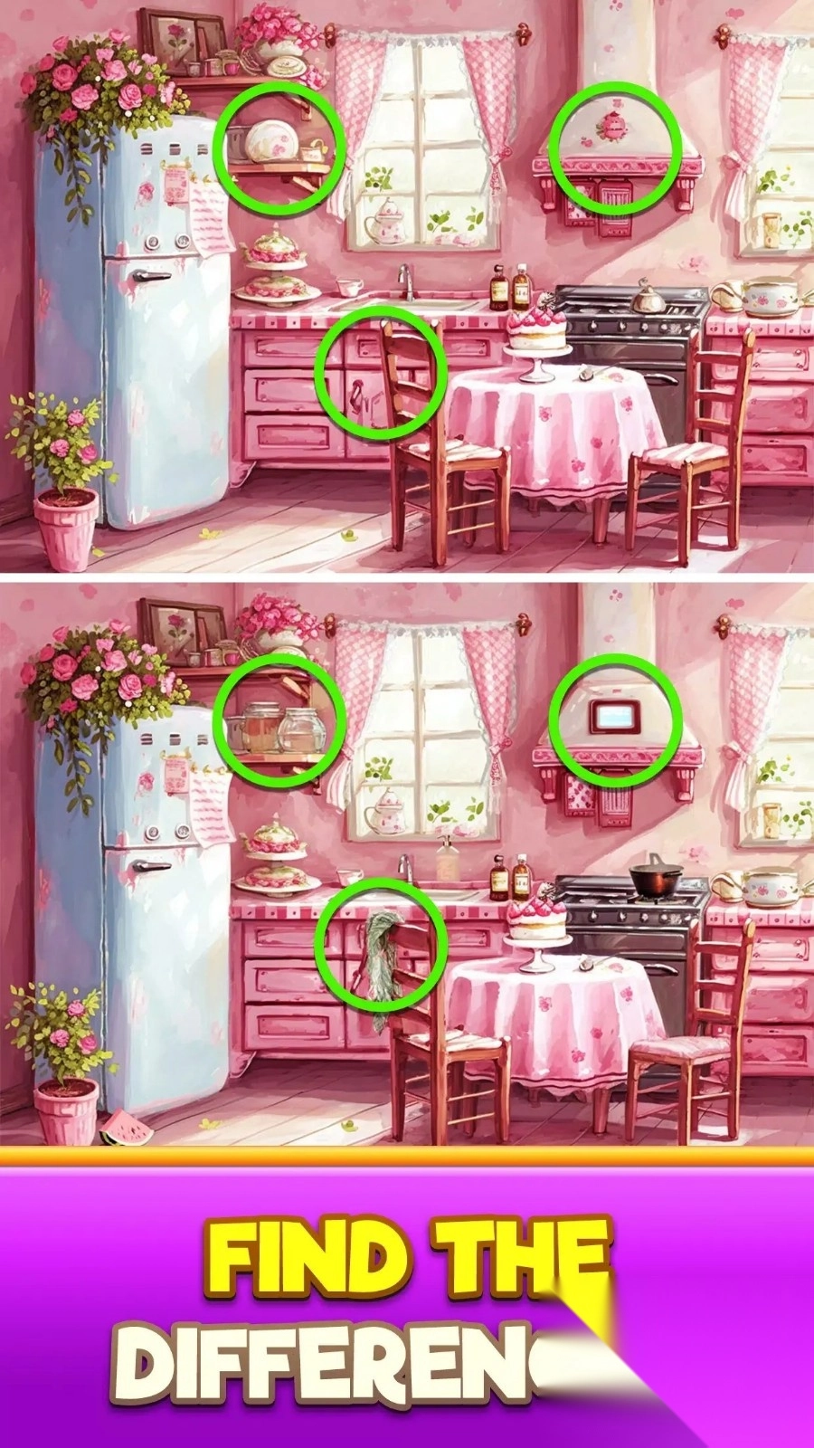 《找不同梦想之家》(Differences Dreamy Home)是一款精巧温馨的休闲益智类游戏,玩家能借助寻找差异这一形式,助力重建理想家园。该游戏运用高清且细腻的画面风格,展现出多个家居场景的细微差别,让玩家在轻松欢快的氛围里锻炼自身的观察力与专注力。