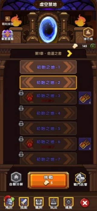 2、选择地图挑战,击败成群怪物并收集装备材料。