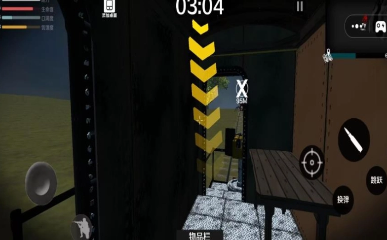 1.虚拟摇杆和触屏操作,玩家可以通过摇杆控制角色移动,同时用手指点击屏幕进行射击;
