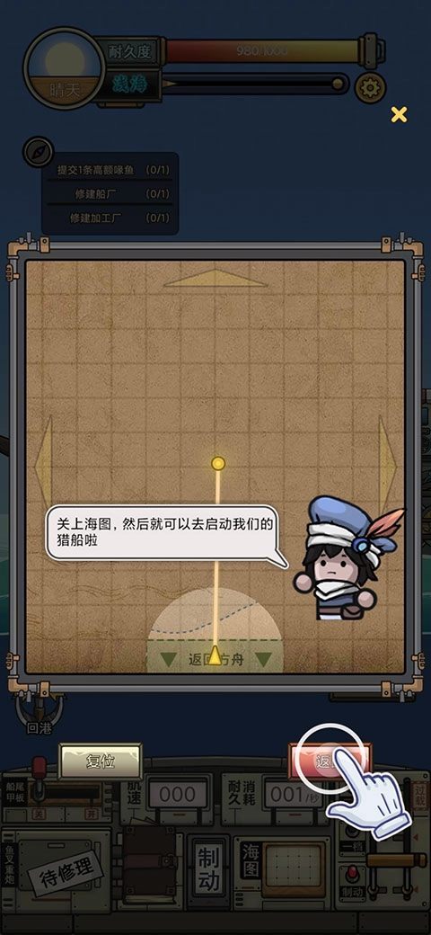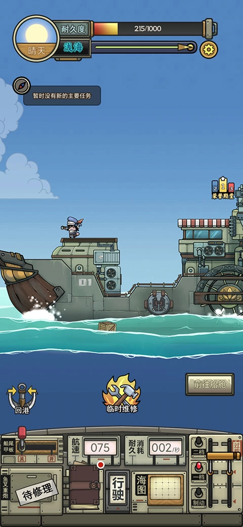 2、出海需要满足特定条件:船体耐久不低于200,且至少需要一格体力。