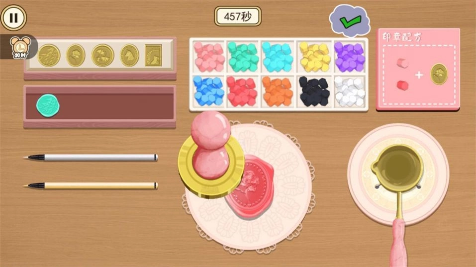 2、材料收集与管理:玩家需在游戏中搜集各种手工材料,如彩纸、布料、纽扣等,合理搭配完成作品;