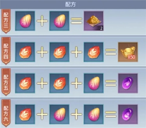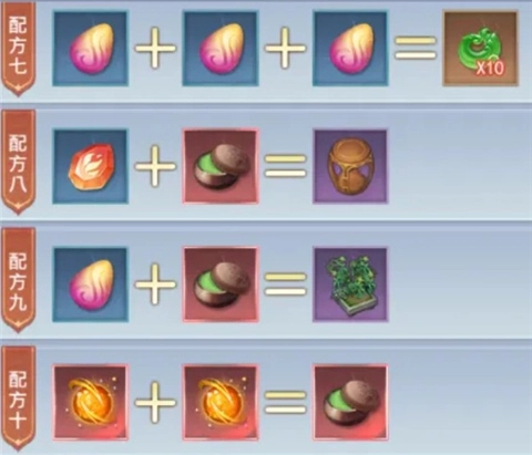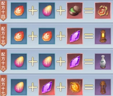 家园玩法中通过种植可以解锁大量材料,下面分享对应材料配方的合成路径: