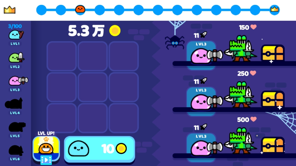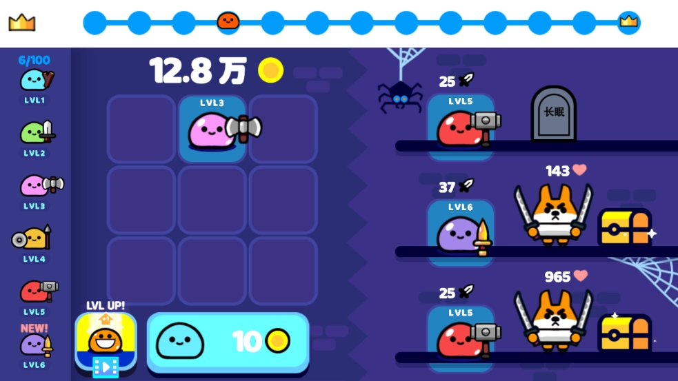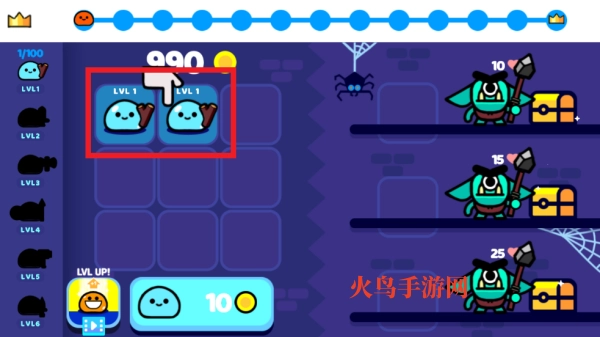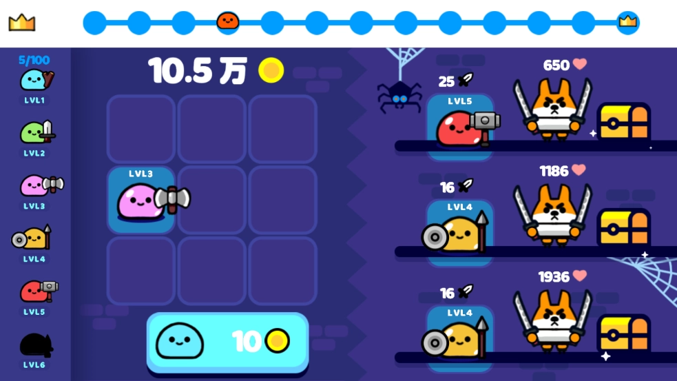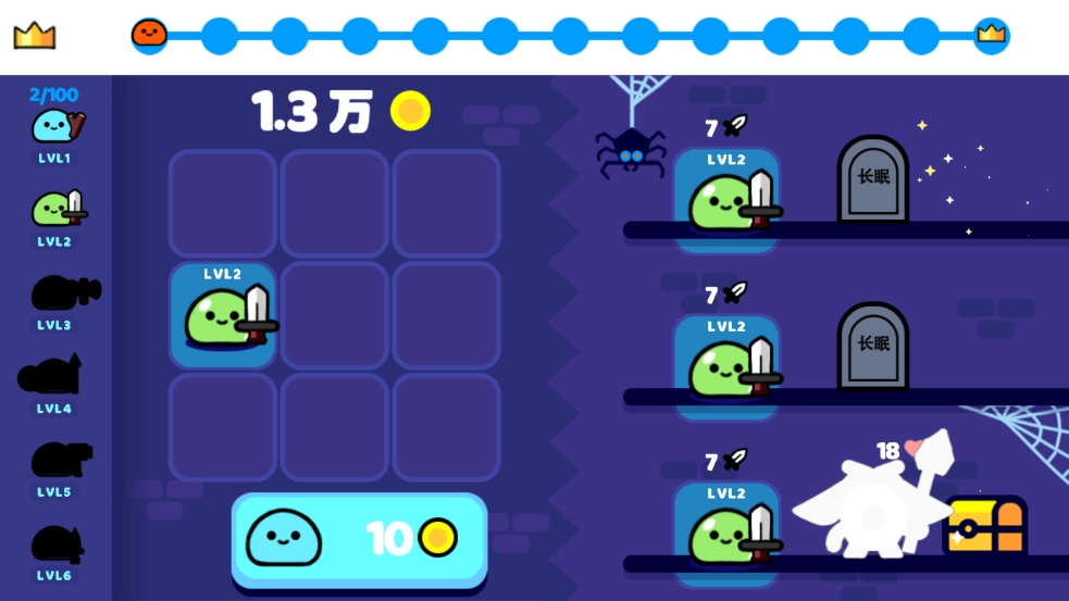 1. 开启游戏后,点击10个金币,召唤基础史莱姆。