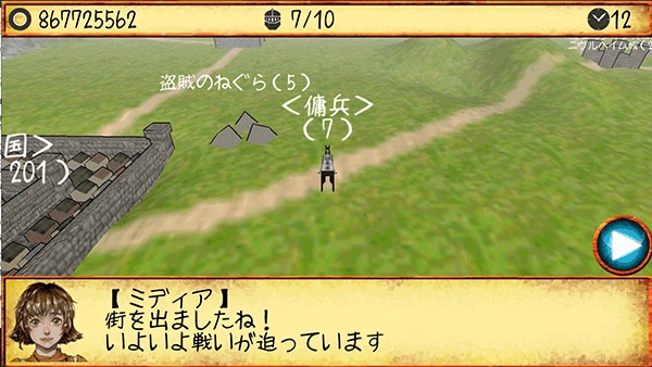 4、离开都市后,应该附近就会有一个营地样子的东西,靠近他,点下面的城堡图标选攻击即可攻打营地。新手教城结束。