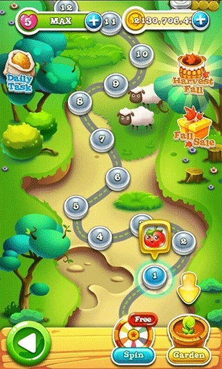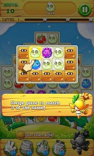 3、收集各种可爱的庄稼你用完之前,移动到目标水平。