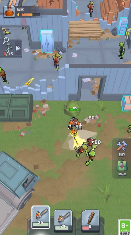 1. 于地图各个地方展开探索,收集木材、金属以及医疗品等各类资源。
