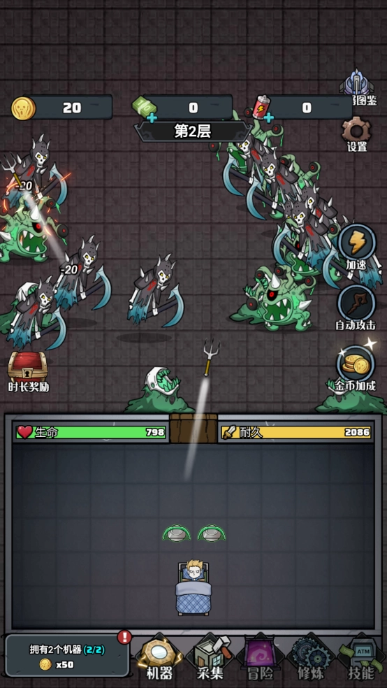 2、各种不同的防御塔等待玩家来解锁,体验丰富的游戏内容内容。