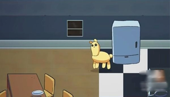 7、直接将玩偶旁边的杯子捡起来,打开冰箱,就能倒入牛奶。