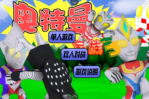 1. 在本站下载安装《奥特曼家族3》游戏,安装完成后打开进入游戏,此时你能够选择单人游玩模式,或者双人对战模式。