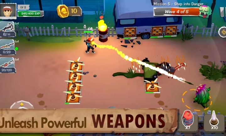 2、使用精准的射击和战术击倒僵尸,在每一波攻击中生存下来。