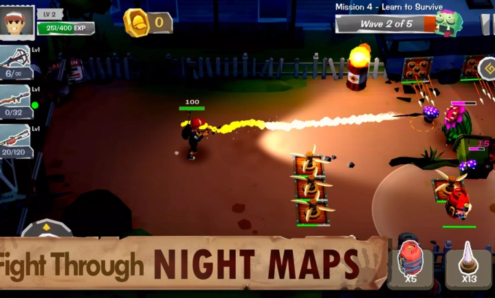 1、逐波生存 - 每个任务抵御5波猛烈的僵尸攻击。