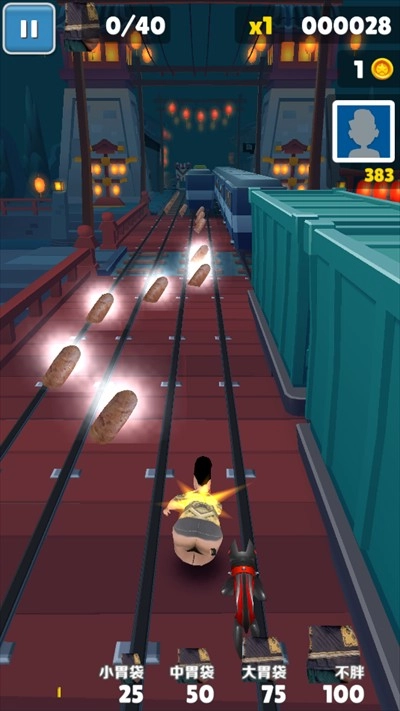 将网红“大胃袋良子”和地铁跑酷结合的游戏。玩家在游戏里可以控制着良子来进行跑酷,在跑酷的过程中还可以偷吃散落在地图上的焖子来增加自己的胃袋。胃袋越大所获得分数也就越高,在受到撞击的时候还可以通过消耗胃袋来抵消伤害。