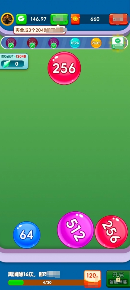 3、获取惊喜奖励:玩家合成2048球球,就能得到惊喜奖励。虽说仅靠看视频不太容易凑齐0.3元,但持续挑战与合成,仍有机会收获更多奖励。