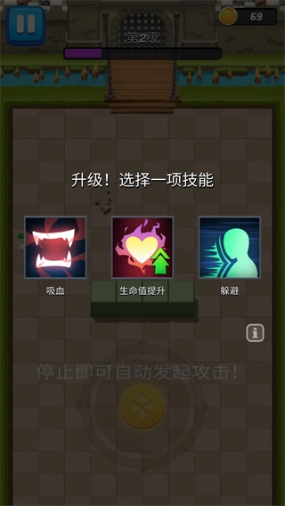 3、每个关卡内设置了不同的层数,每通过一层即可选择升级一项技能。