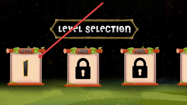 2、在关卡选择界面,按照箭头指向处点击标有LEVEL-1的图标,进入游戏第一关开启模拟体验。